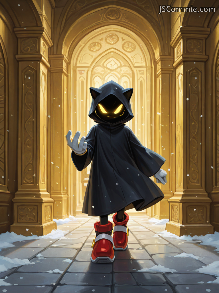 Ch. 21 - With 2 Chaos Emeralds, Copter opens the Chaos Shrine in the Mystic Ruins. Within, he encounters the mysterious Shadow Chaos, which fights him before escaping... (I had to use my own drawing to generate this one. That drawing is included.)