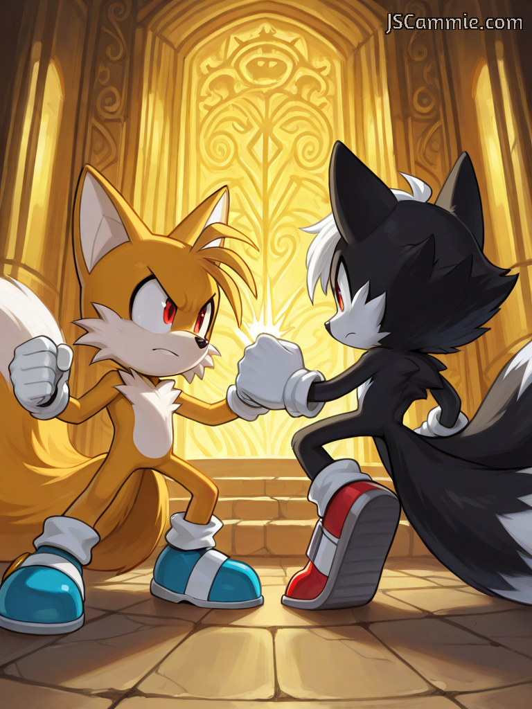 Ch. 23 - Tails finds Copter about to take the Chaos Tailbands from the shrine. Tails snatches one of the Tailbands, and the duo fight over them before Copter once again comments about wasting time, and leaves with just one Tailband. Sadly, I could not depict the Tailbands through Ai.