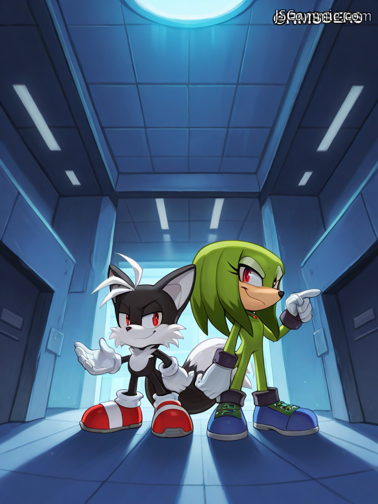 Ch. 23 - Tails finds Copter about to take the Chaos Tailbands from the shrine. Tails snatches one of the Tailbands, and the duo fight over them before Copter once again comments about wasting time, and leaves with just one Tailband. Sadly, I could not depict the Tailbands through Ai.