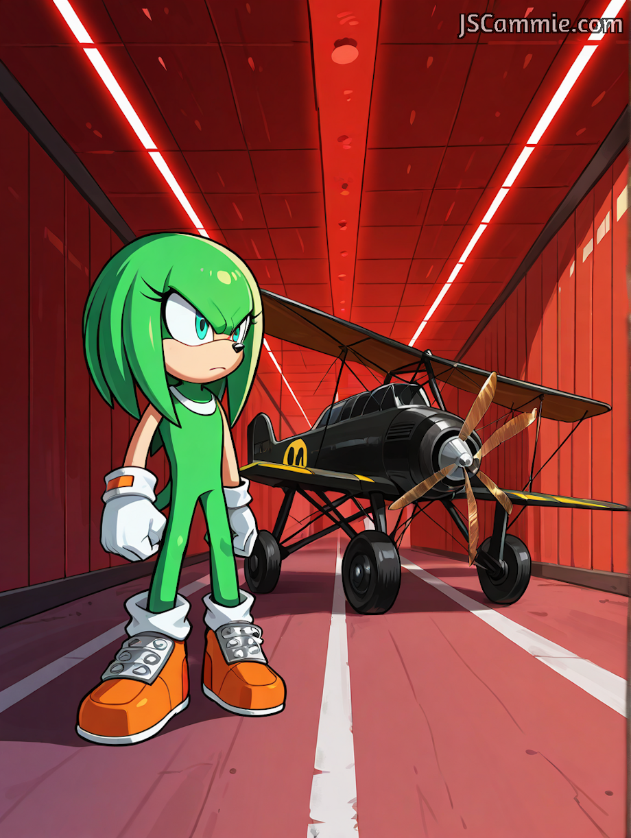 Ch. 31 - After trouncing Gunner's troops, Copter races to Eggman's space shuttle hangar, exclaiming that he's nearly out of time! The Ai wouldn't make a proper space shuttle like I wanted, so... this is apparently Copter inside of it. Yeah.