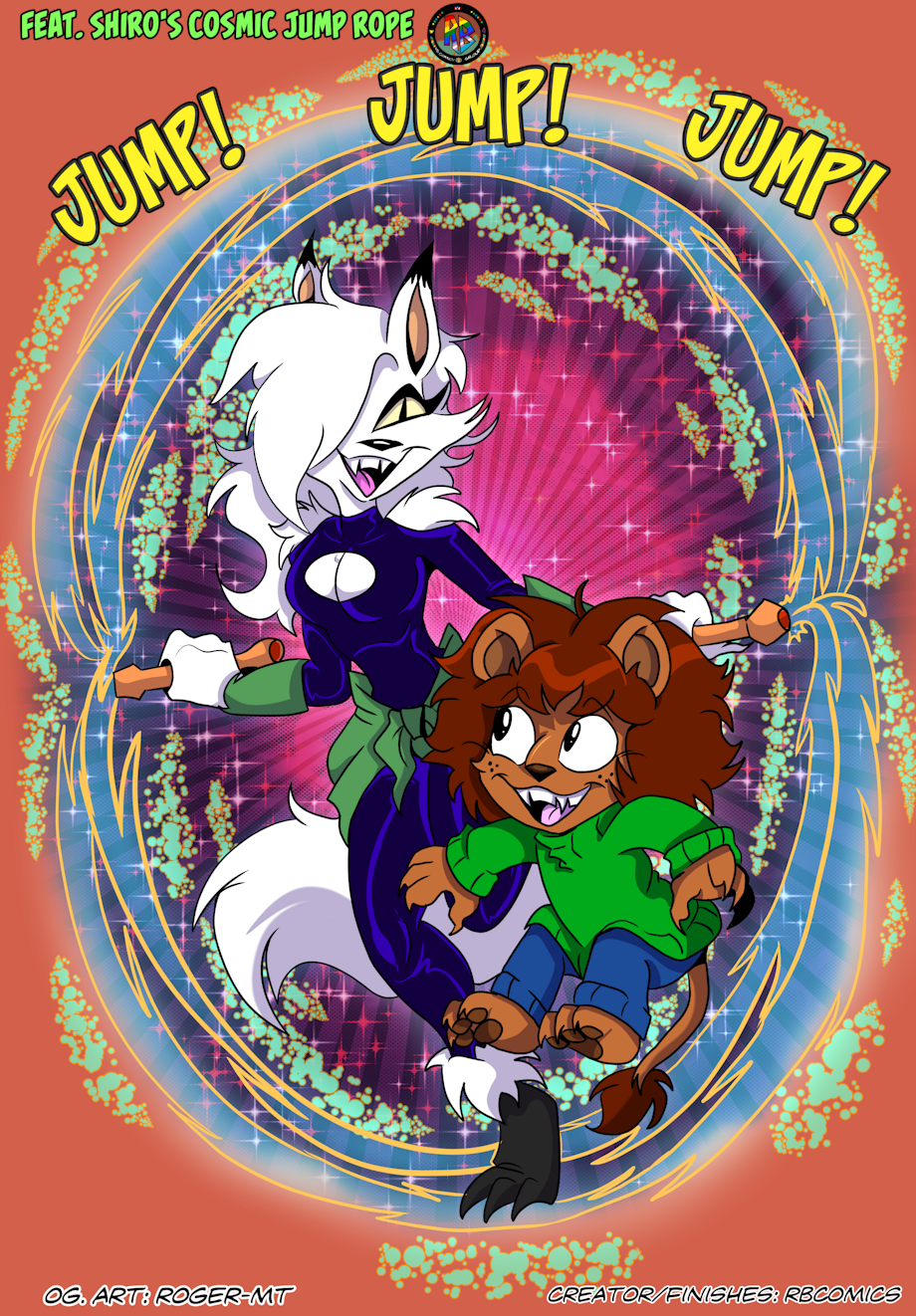 Now: The Cosmic Jump-Rope! One of the many, many items in the ol' fox thief's arsenal is her "Cosmic Jumprope". A Magical traveling device where Shiro imagines a location and begins skipping her jumprope, which triggers a portal that leads her or a partner who joins the rope skipping to another world, either from Earth, another planet, or a queer dimension.