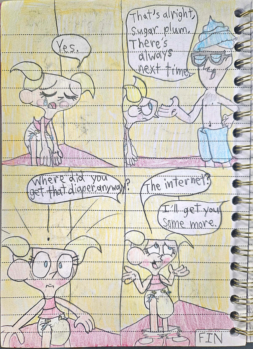 I don't know if I got the diaper size right for this, since Deedee has such a tiny bladder that contains as much as a bull. But I hope you like this free commission idea.