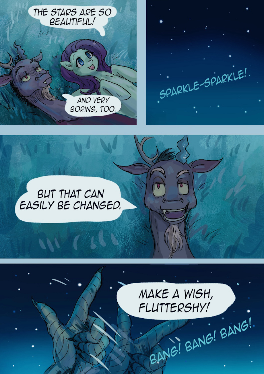 A translation of a comic about the wedding of Discord and Fluttershy and Pinkie Pie and Cheese Sandwich, which I commissioned from the artist who drew it,