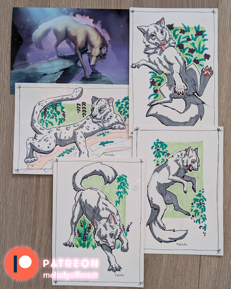 Postcards I drew for my supporters on Patreon and sent by letter.