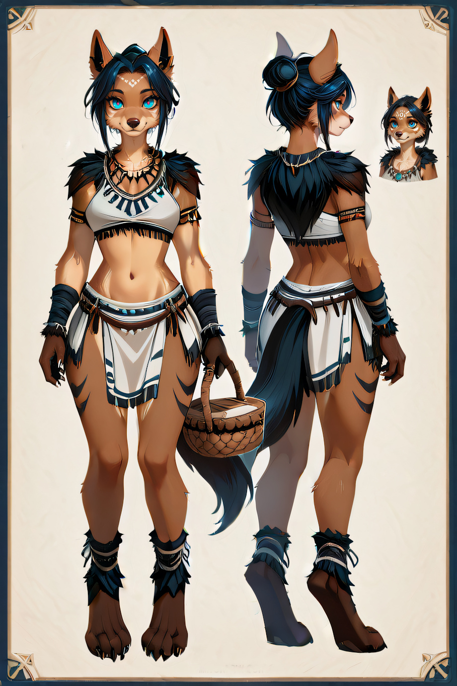 <lora:character_Sheet_XL:0.8> character sheet, Multiple views, simple background masterpiece, high quality, detailed fur, high detail, 4k, detailed background (solo, full body, tribal outfit, holding basket:1.3) <lora:(1) FenrisXL Lighting:1> <lora:(1) Mjölnir (SDXL Lighting):1> <lora:photorealistic anthro 2:1> furry <l0ck> (female:anthro:mightyena:1.3) (parted bangs, hair bun, short hair, black hair:1.4) (small ears:1.3) (full eyelashes:1.4) (blue eyes with black pupils:1.2) (circular mark on forehead:1.3) (brown nose bridge:1.4) (petite, round hips:1.5) (dark brown fur, white belly:1.3) (digitigrade:1.2) (medium breasts:1.3) (tribal markings:1.3) (chest tuft:1.3) (fluffy tail, black tail:1.3) (black inner ear:1.3) (black wrist tuft, black ankle tuft:1.5) (fluffy ankles:1.6) (fluffy shoulders:1.5), (clothes:2) Negative prompt: bloodshot eyes, arms behind back, hands behind back, blurry, blurry background, bad anatomy, bad hands, three hands, three legs, bad arms, missing legs, missing arms, poorly drawn face, bad face, fused face, cloned face, worst face, three crus, extra crus, fused crus, worst feet, three feet, fused feet, fused thigh, three thigh, fused thigh, extra thigh, worst thigh, missing fingers, extra fingers, ugly fingers, long fingers, horn, realistic photo, extra eyes, huge eyes, 2girl, amputation, disconnected limbs, worst quality, normal quality, low quality, low res, blurry, text, watermark, logo, banner, extra digits, cropped, jpeg artifacts, signature, username, error, sketch ,duplicate, ugly, monochrome, horror, geometry, mutation, disgusting, jpeg artifacts, , NEGATIVE_HANDS ac_neg2 p0rnXL-neg DeepNegative_xl_v1 BeyondV3-neg, (nipples, nude, nudity:2) (erect nipples:2) (topless:2) Steps: 15, Sampler: Euler, Schedule type: SGM Uniform, CFG scale: 3, Seed: 532172920, Size: 512x768, Model hash: 171e88f0da, Model: yiffymix_v62Noobxl, Denoising strength: 0.01, ADetailer model: person_yolov8s-seg.pt, ADetailer confidence: 0.01, ADetailer dilate erode: 4, ADetailer mask blur: 4, ADetailer denoising strength: 0.4, ADetailer inpaint only masked: True, ADetailer inpaint padding: 32, ADetailer model 2nd: face_yolov8s.pt, ADetailer confidence 2nd: 0.3, ADetailer dilate erode 2nd: 4, ADetailer mask blur 2nd: 4, ADetailer denoising strength 2nd: 0.4, ADetailer inpaint only masked 2nd: True, ADetailer inpaint padding 2nd: 32, ADetailer model 3rd: hand_yolov8n.pt, ADetailer confidence 3rd: 0.3, ADetailer dilate erode 3rd: 4, ADetailer mask blur 3rd: 4, ADetailer denoising strength 3rd: 0.3, ADetailer inpaint only masked 3rd: True, ADetailer inpaint padding 3rd: 32, ADetailer model 4th: mediapipe_face_mesh_eyes_only, ADetailer confidence 4th: 0.3, ADetailer dilate erode 4th: 4, ADetailer mask blur 4th: 4, ADetailer denoising strength 4th: 0.4, ADetailer inpaint only masked 4th: True, ADetailer inpaint padding 4th: 32, ADetailer version: 25.3.0, Hires upscale: 1.5, Hires steps: 20, Hires upscaler: 4xUltrasharp_4xUltrasharpV10.pth, Lora hashes: "character_Sheet_XL: 4c59246e5115, (1) FenrisXL Lighting: c49df8024095, (1) Mjölnir (SDXL Lighting): 368d428918ac, photorealistic anthro 2: bed53d4c8b68", TI: "NEGATIVE_HANDS, ac_neg2, p0rnXL-neg, DeepNegative_xl_v1, NEGATIVE_HANDS, ac_neg2, p0rnXL-neg, DeepNegative_xl_v1", Version: f2.0.1v1.10.1-previous-224-g90019688 |