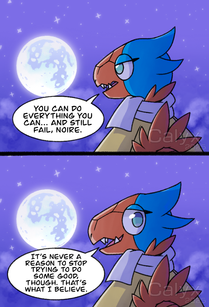 Wonder what his fascination with the moon is, though… --- Want to see my art before they're uploaded here? See my Bluesky at calyxthefox . bsky. social !