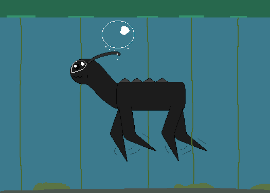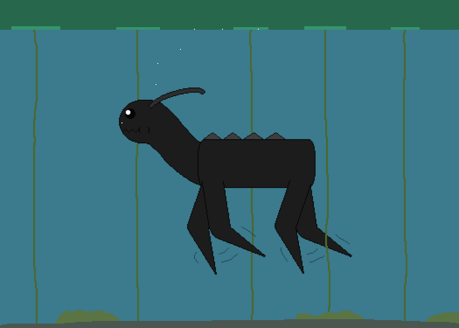 Nox always likes exploring Earth, the world being so much different from where he's from. But, sunlight always gets in the way of that, meaning he can only go out at night... Except in certain places. Here in this swamp, there's quite a lot of tree coverage overhead, and it all blocks the sunlight enough that he can safely be outside in it during the day! He's of course taking advantage of that, and currently going on a dive in it to see what's down there, happily swimming around plants he doesn't recognize.