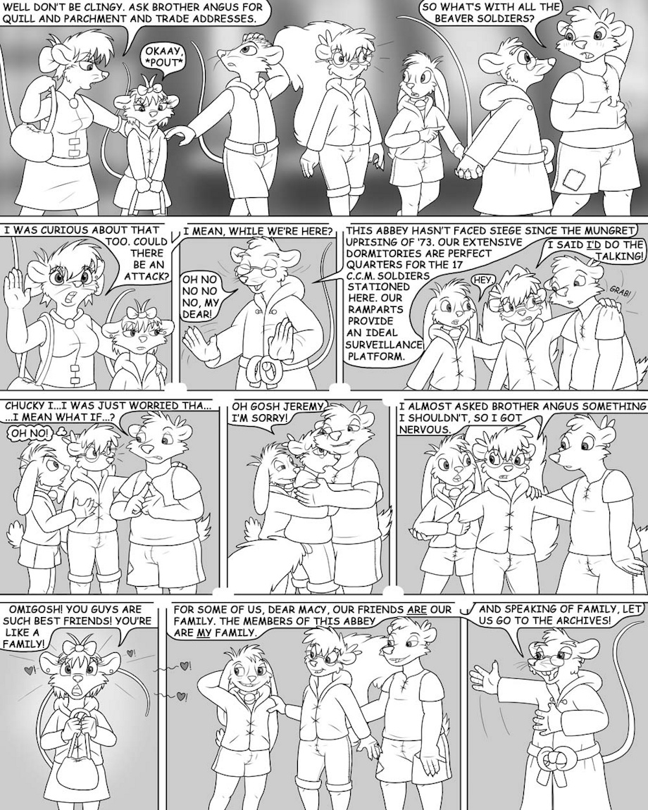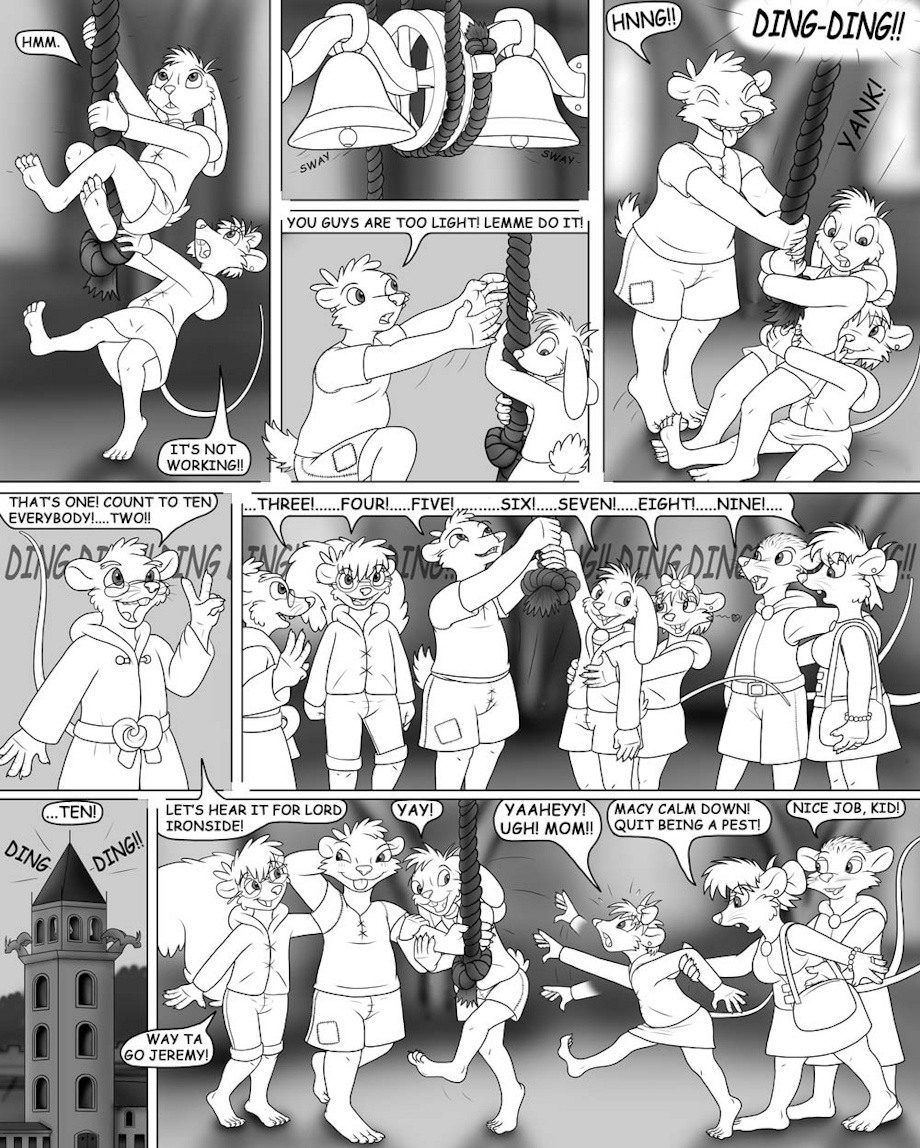 I'm glad you noticed Jeremy's size. It's not so much that he's big, it's that anthro mice are small. Remember what Chucky looked like standing next to Gwendolyn? She's 5'10", so she's kinda tall but not REAL tall. Brother Angus and the Fremont parents are around the same height as Chucky, normal size for adult mice.