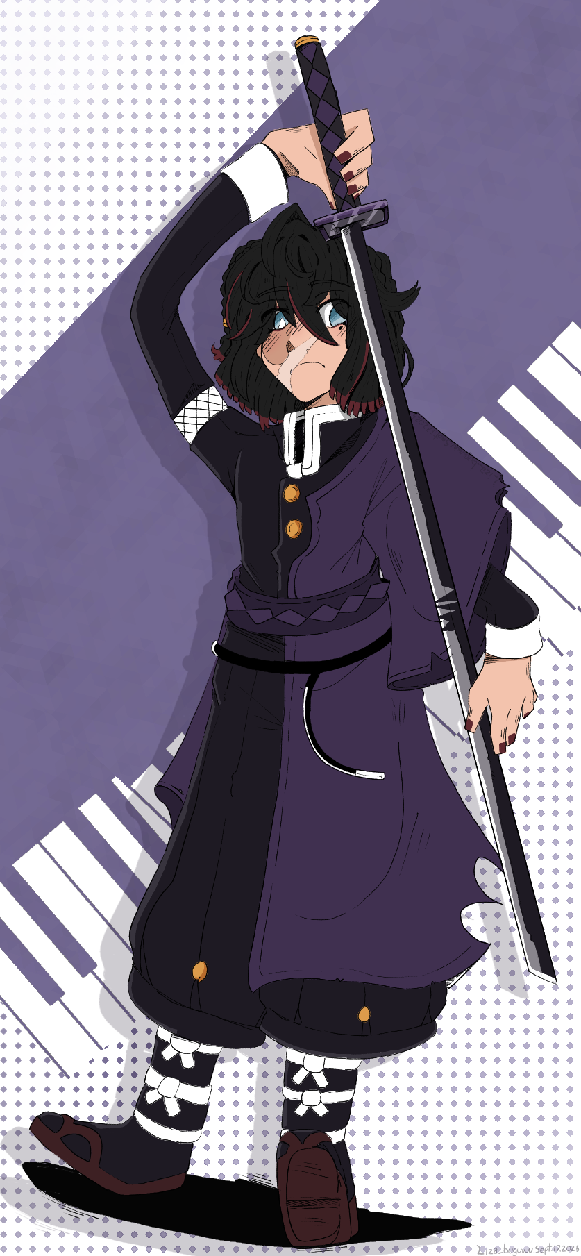 New demon slayer oc, had help from another oc challenge, sketched in roblox realistic spray paint, finished in Ibispaint.~