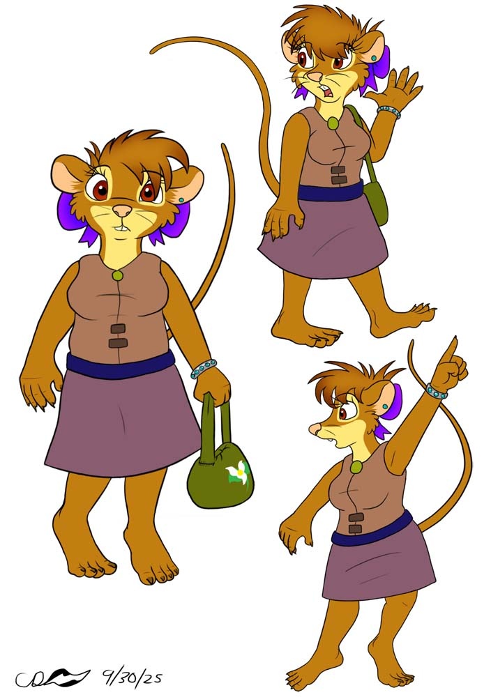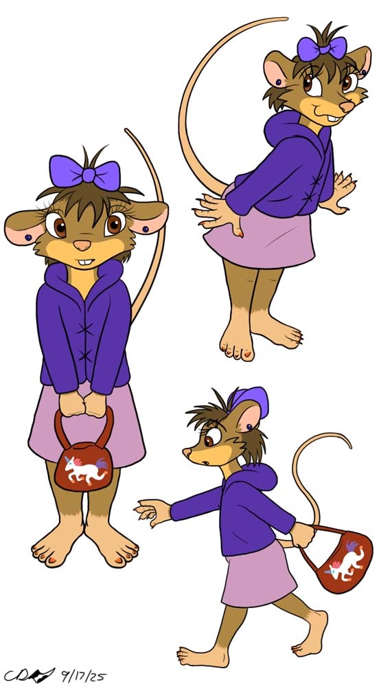 Macy is an 8-year-old mouse girl from nearby. She traveled to Corvalis with her family so they could research her mother's heritage. Threatened with boredom, she focused her attention on a cute white lop bunny.