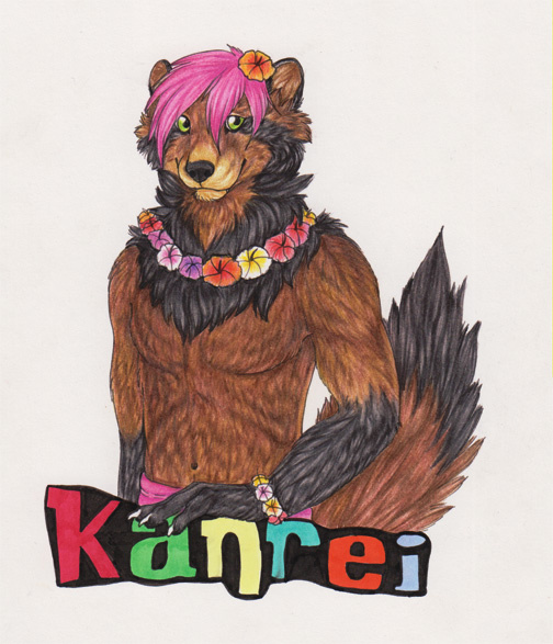 Finished badge for Kanrei of himself :) Themed badge for this years EuroFurence 'Aloha Hawaii'
