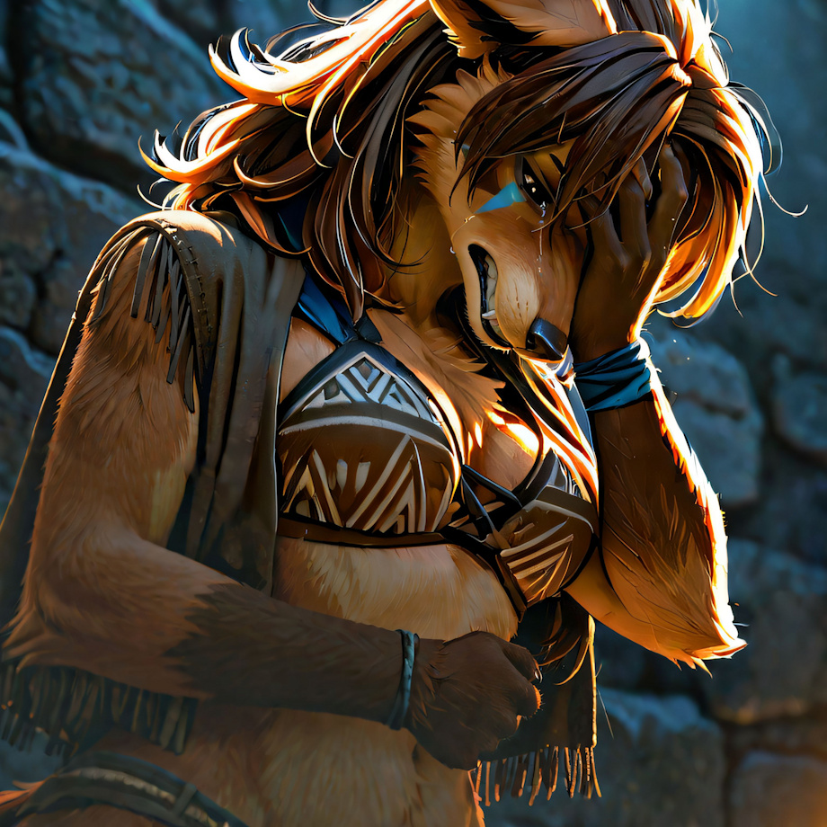 masterpiece, high quality, detailed fur, high detail, 4k, detailed background (solo, closeup, holding side, crying, ears down, tribal outfit, teeth showing, flinching, looking down, dramatic:1.4) (dark background, stone wall background, covering eye, spotlight, dynamic:1.4) <lora1) FenrisXL Lighting:1> <lora1) Mjölnir (SDXL Lighting):1> <lorahotorealistic anthro 2:1> furry <d45513> (female:anthro:voluptuous:slender:athletic:mightyena:1.4), (auburn fur, brown belly:1.5), (medium hair, hair on shoulders, parted bangs, brown hair:1.5), (thin fringe:1.4), (medium breasts:1.4), (black eyes with black pupils:1.5), (digitigrade:1.1), (chest tuft:1.5), (blue markings, tribal markings:1.4), (ankle tuft, wrist tuft:1.2), (clothes:2) Negative prompt: bloodshot eyes, arms behind back, hands behind back, blurry, blurry background, bad anatomy, bad hands, three hands, three legs, bad arms, missing legs, missing arms, poorly drawn face, bad face, fused face, cloned face, worst face, three crus, extra crus, fused crus, worst feet, three feet, fused feet, fused thigh, three thigh, fused thigh, extra thigh, worst thigh, missing fingers, extra fingers, ugly fingers, long fingers, horn, realistic photo, extra eyes, huge eyes, 2girl, amputation, disconnected limbs, worst quality, normal quality, low quality, low res, blurry, text, watermark, logo, banner, extra digits, cropped, jpeg artifacts, signature, username, error, sketch ,duplicate, ugly, monochrome, horror, geometry, mutation, disgusting, jpeg artifacts, , NEGATIVE_HANDS ac_neg2 p0rnXL-neg DeepNegative_xl_v1 BeyondV3-neg, (nipples, nude, nudity:2) (erect nipples:2) (topless:2) Steps: 20, Sampler: DDIM, Schedule type: SGM Uniform, CFG scale: 3, Seed: 1720780416, Size: 512x512, Model hash: 171e88f0da, Model: yiffymix_v62Noobxl, Variation seed: 714083693, Variation seed strength: 0.1, Denoising strength: 0.1, ADetailer model: person_yolov8s-seg.pt, ADetailer confidence: 0.01, ADetailer dilate erode: 4, ADetailer mask blur: 4, ADetailer denoising strength: 0.4, ADetailer inpaint only masked: True, ADetailer inpaint padding: 32, ADetailer model 2nd: face_yolov8s.pt, ADetailer confidence 2nd: 0.3, ADetailer dilate erode 2nd: 4, ADetailer mask blur 2nd: 4, ADetailer denoising strength 2nd: 0.4, ADetailer inpaint only masked 2nd: True, ADetailer inpaint padding 2nd: 32, ADetailer model 3rd: hand_yolov8n.pt, ADetailer confidence 3rd: 0.3, ADetailer dilate erode 3rd: 4, ADetailer mask blur 3rd: 4, ADetailer denoising strength 3rd: 0.3, ADetailer inpaint only masked 3rd: True, ADetailer inpaint padding 3rd: 32, ADetailer model 4th: mediapipe_face_mesh_eyes_only, ADetailer confidence 4th: 0.3, ADetailer dilate erode 4th: 4, ADetailer mask blur 4th: 4, ADetailer denoising strength 4th: 0.4, ADetailer inpaint only masked 4th: True, ADetailer inpaint padding 4th: 32, ADetailer version: 25.3.0, Hires upscale: 1.5, Hires steps: 20, Hires upscaler: 4xUltrasharp_4xUltrasharpV10.pth, Lora hashes: "(1) FenrisXL Lighting: c49df8024095, (1) Mjölnir (SDXL Lighting): 368d428918ac, photorealistic anthro 2: bed53d4c8b68", TI: "NEGATIVE_HANDS, ac_neg2, p0rnXL-neg, DeepNegative_xl_v1, NEGATIVE_HANDS, ac_neg2, p0rnXL-neg, DeepNegative_xl_v1", Version: f2.0.1v1.10.1-previous-224-g90019688 |