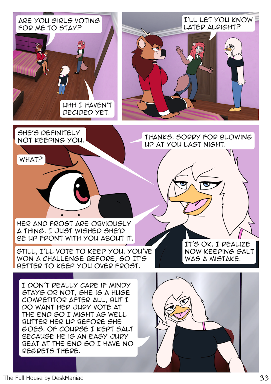 The girls discuss who should go. I really don't like how the speech bubbles look in the middle row, but idk what else to do. It's just so messy.