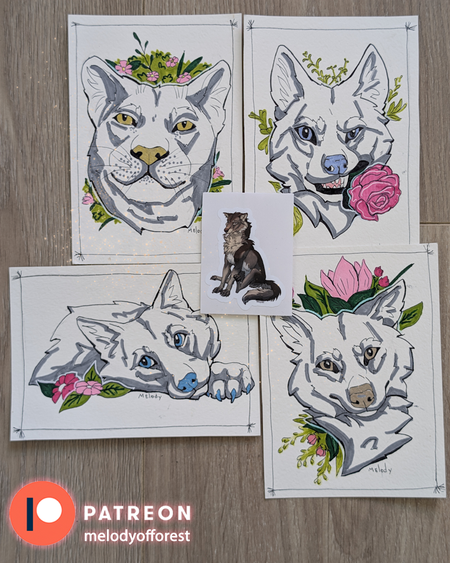 Postcards I drew for my supporters on Patreon and sent by letter.