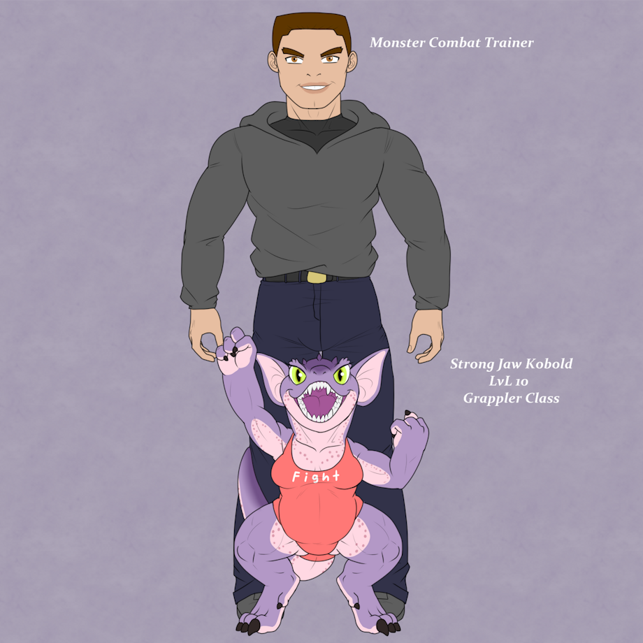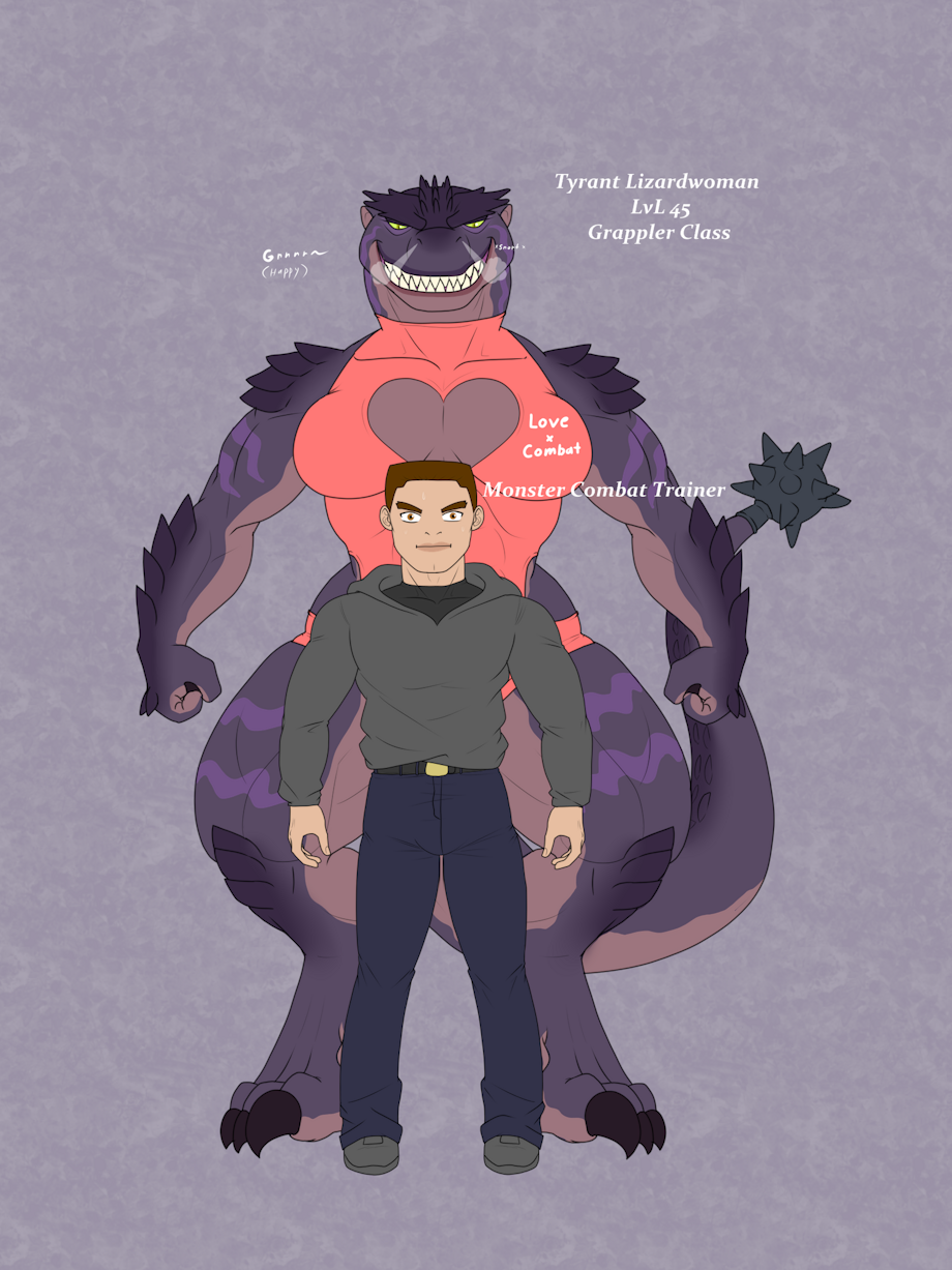 Tyrant lizardman/woman are a very rare mutation for kobolds to become. As the requirement is to never lose a one-on-one battle from lvl 10 to 30. Tyrants are the largest and most durable breed of lizardmen. They are also very very possessive and protective of those they like/love.