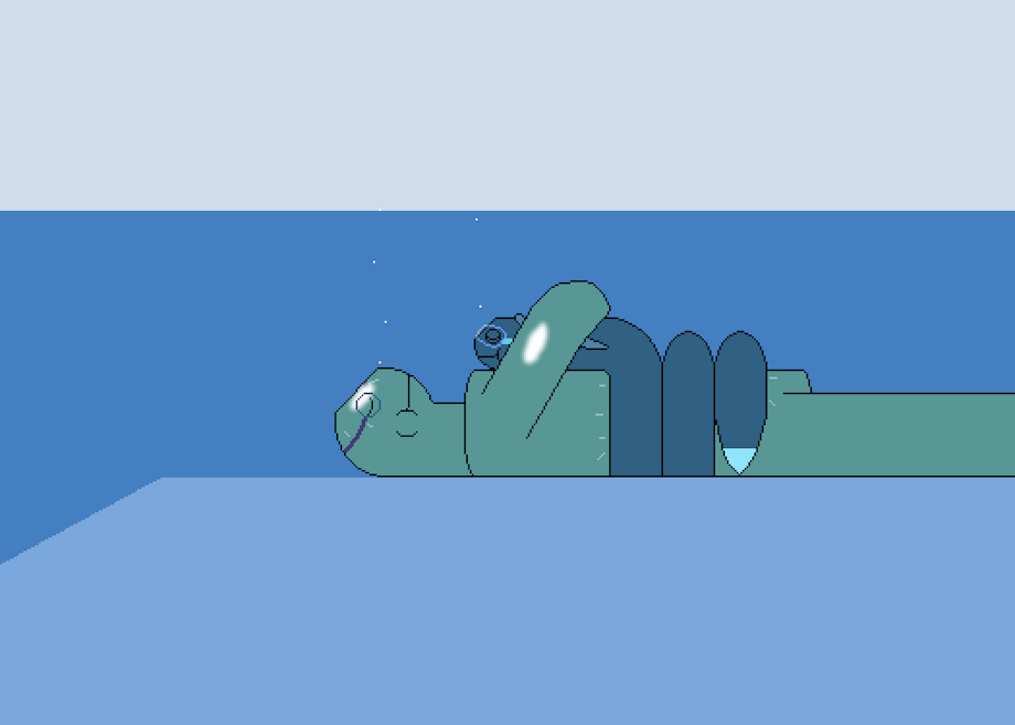 Sni-tii's got a pretty big lizard friend that loves the idea of being underwater, but the poor guy's always had a problem: His body is way too buoyant, and he can't swim well enough to go fully under! But, meeting up with him again and explaining her relatively new power to him, the two got an idea...