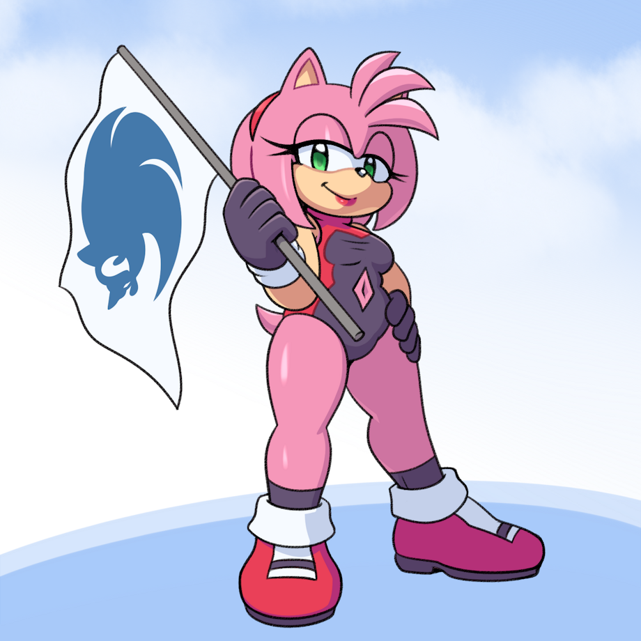 Oh damn! She looking good as a flag girl. Hopefully waiting to see sonic racing into first place. So she can wave the flag for him but also for her to see if he looks and notices the outfit. Ha!
