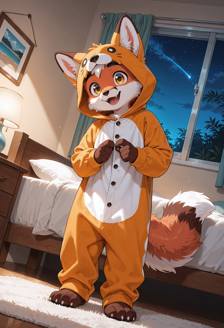 ONESIE! Yeah! That's what they choose to cover their body for the night! There is various possibilities to jump in, starting from their favourite species, ending in onesie of themselves!