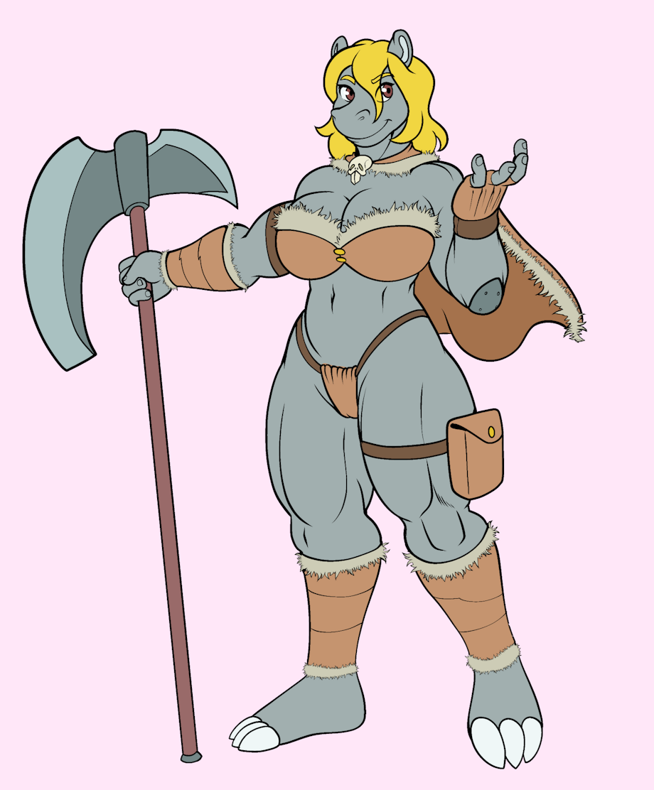 Nothing to simple, just my hippo gal dressed as a Barbarian. She likes to show herself off so the class with not a lot of clothes is what she likes, though her weapon isn’t just for show, make her made and you’ll probably get cleaved in half.