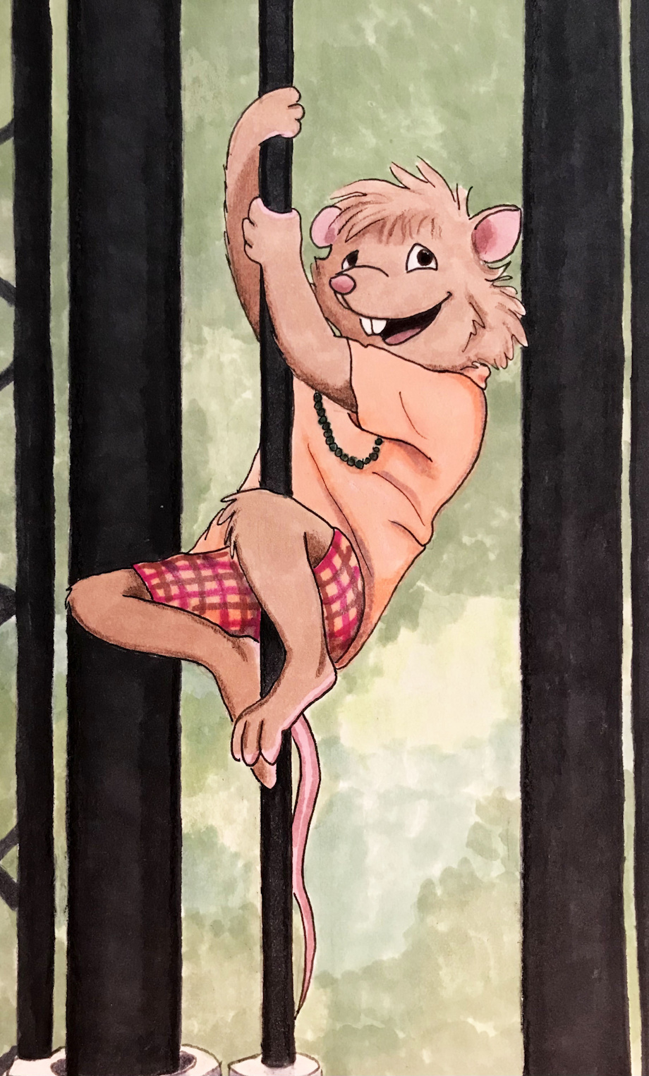 In 2015 I drew this little fur having a climb- I think I called her Freda- and then it took until last week before I figured out a good background to stick her in!