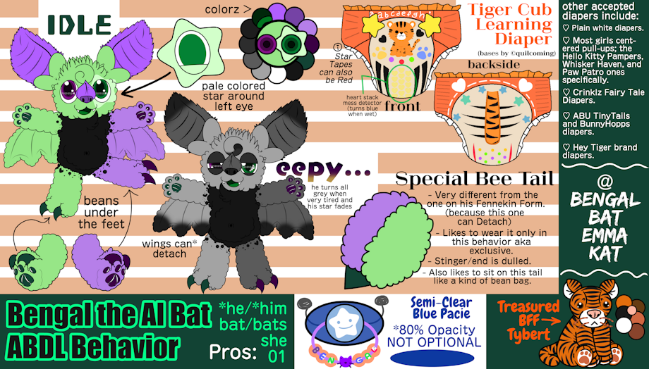 - Redid the ABDL Ref for him but instead of posting it separately I wanted put it on here, little easier this way honestly; bases for tiger diaper design were made by © QuilComing. (11/10)