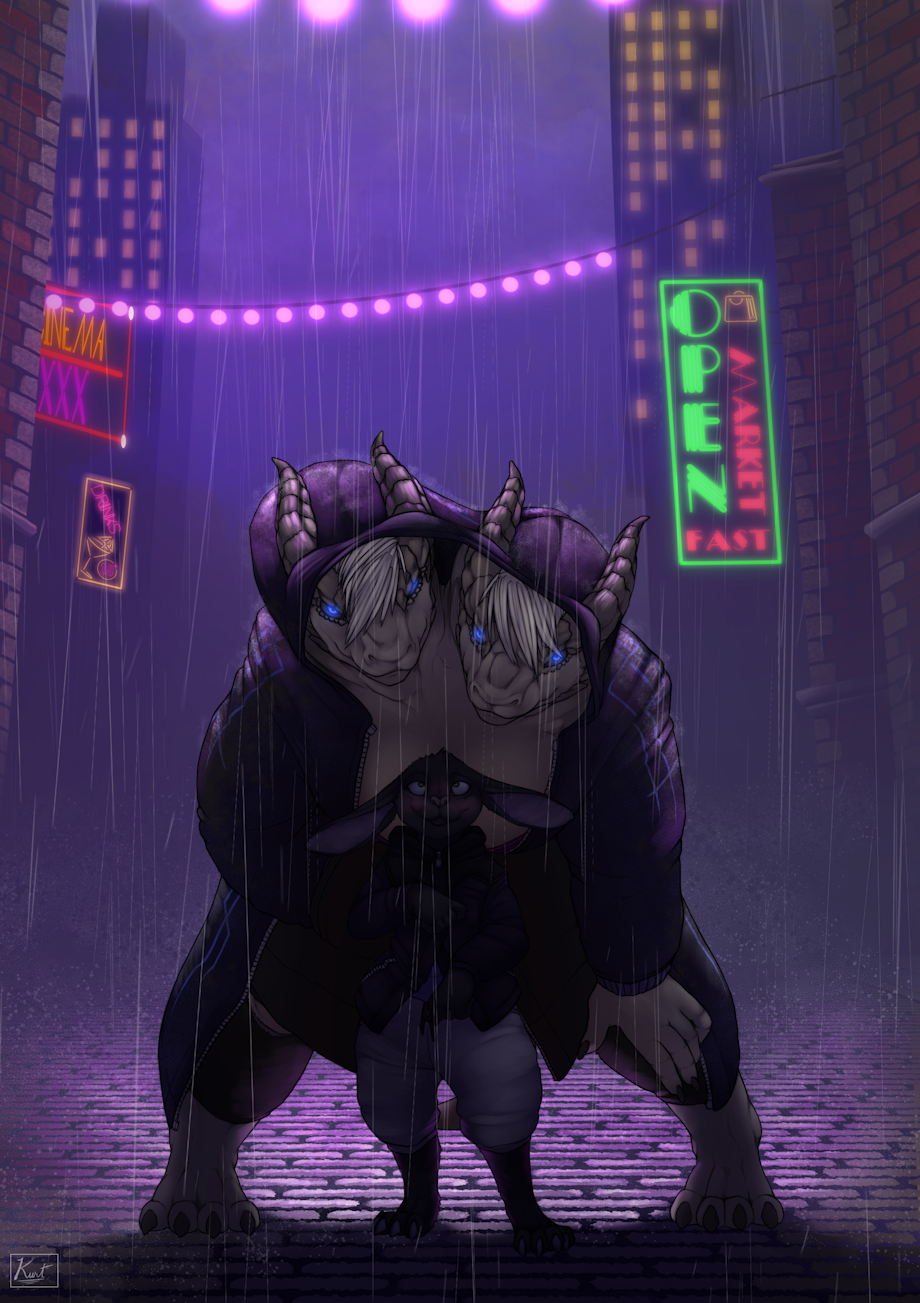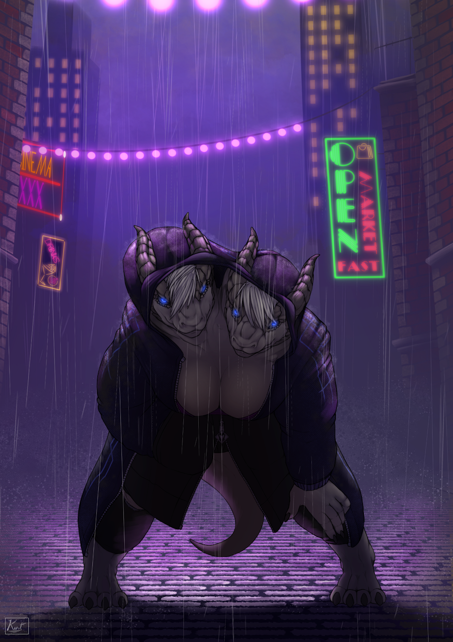 A city of perpetual rainfall and shady indulgences, where people walk down the street with their head down.