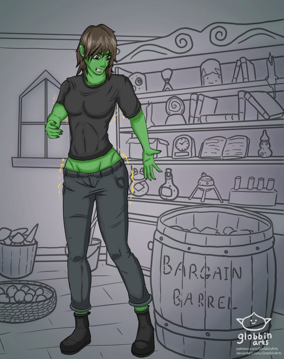 The clothes strain beneath the ever-changing form beneath them, tight around their larger thighs and bulkier frame, threatening to tear or split under the growing pressure.