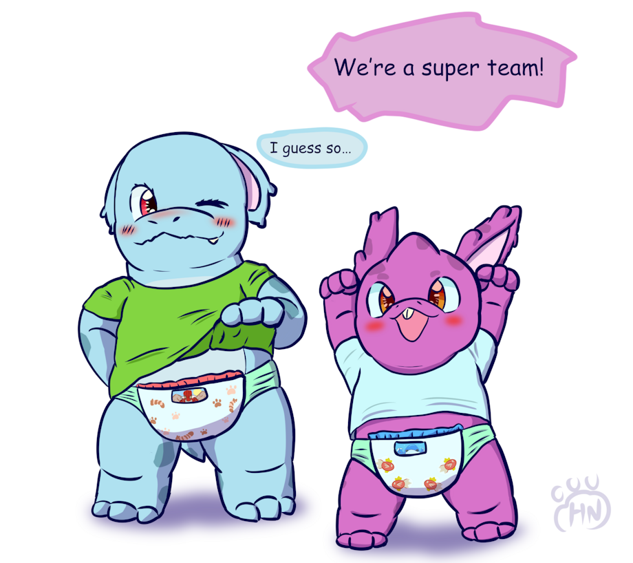 Due to certain circumstances, Nidorina is wearing pull-ups — so if she’s already wearing them anyway, she figures she might as well match with her little brother