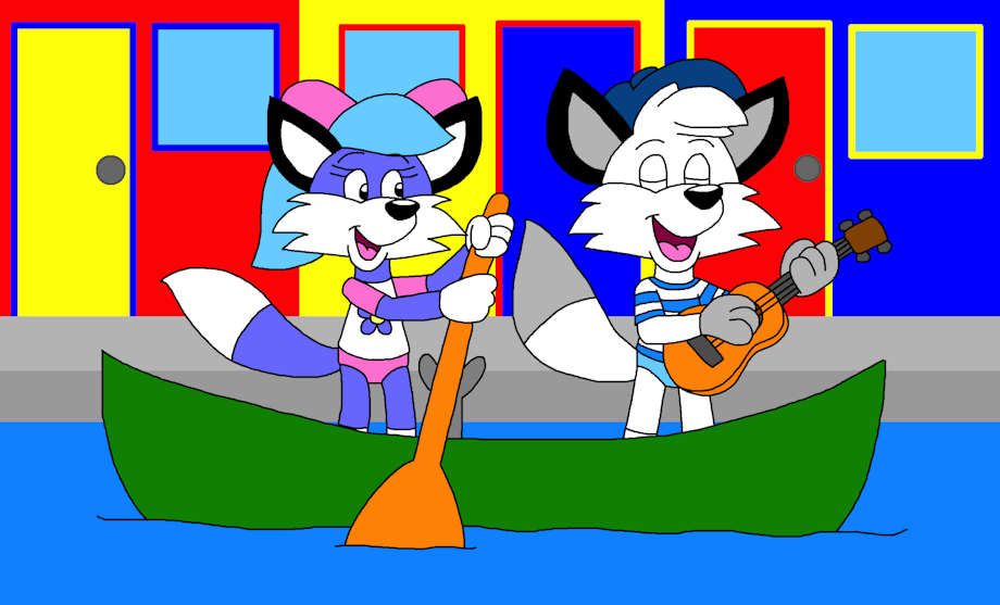 Bluebell the Fox Ride on a Green Gondala and with Orange Oar, and Stanley the Fox Playing a Orange Ukulele and Began to Sing.