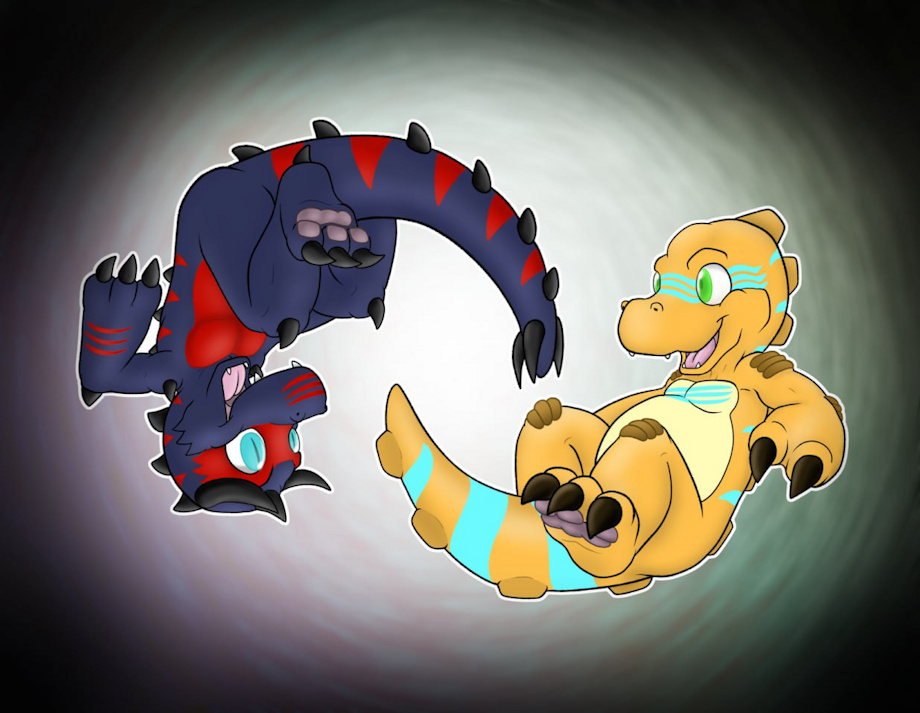 It's a combination of a caveman and a dinosaur, but also added other mammal features like paw pads, bellybutton and... other things =p