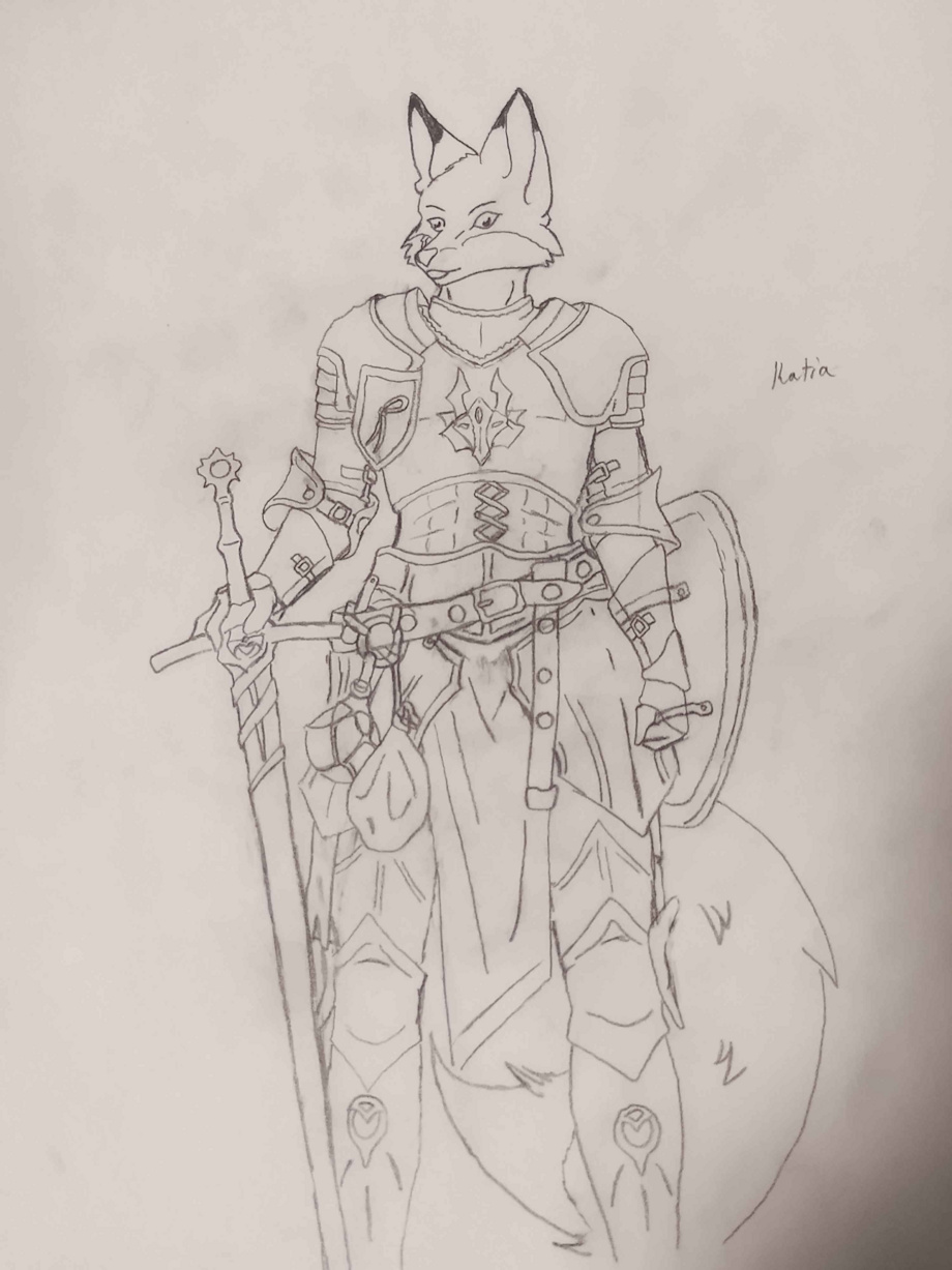 Another sketch attempt at Katia, trying different armor drawings see what I like. I know I skimped out on her tails as she should have more.