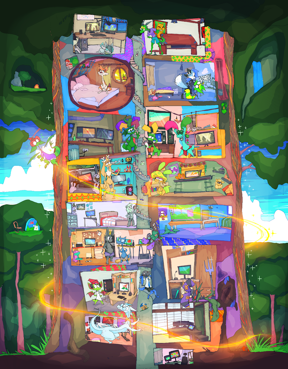Wohooo!!! It is done, folks - over 20 submissions got, a huge tree with everyone's rooms has resulted!!!! Thank you all for participating in this Art Event, I made sure to include everyone! I hope you enjoy your room vacation in our Magic Tree of Friendship!!!!!