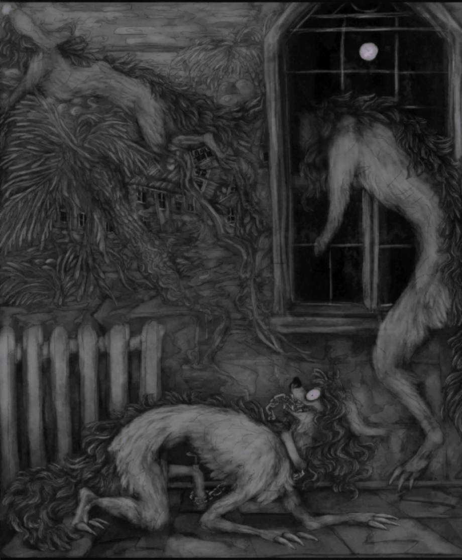 Plus edited black and white version since I originally pictured it being black and white before I coloured it
