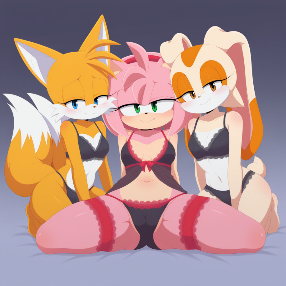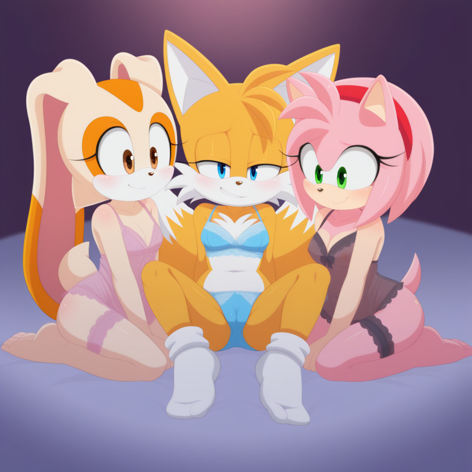 He is kind of cute. There are a number of images out there where femboy Tails interacts with a futa Amy and a non-futa Rouge occasionally. I'm not a massive futa fan, but it's kind of cute and there's kind of an underlying feeling that they're helping him come out of his shell over time.
