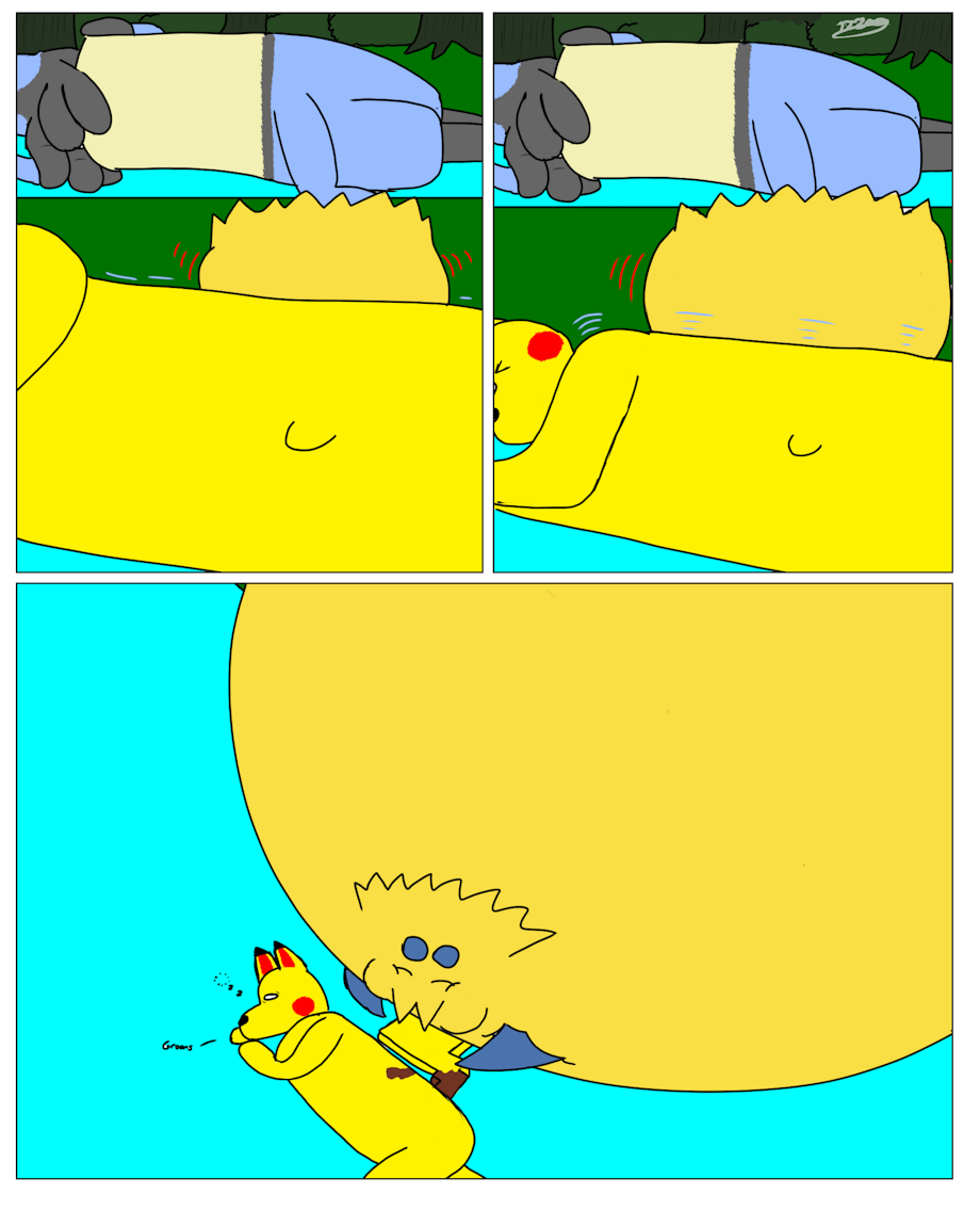 As James runs out of energy he then starts to shrink while the Joltik doesn't seem to want to stop as how easily its getting the food inside itself. finally hitting the size of 15cm James finally wakes up to the strong weight pressing on his tail.