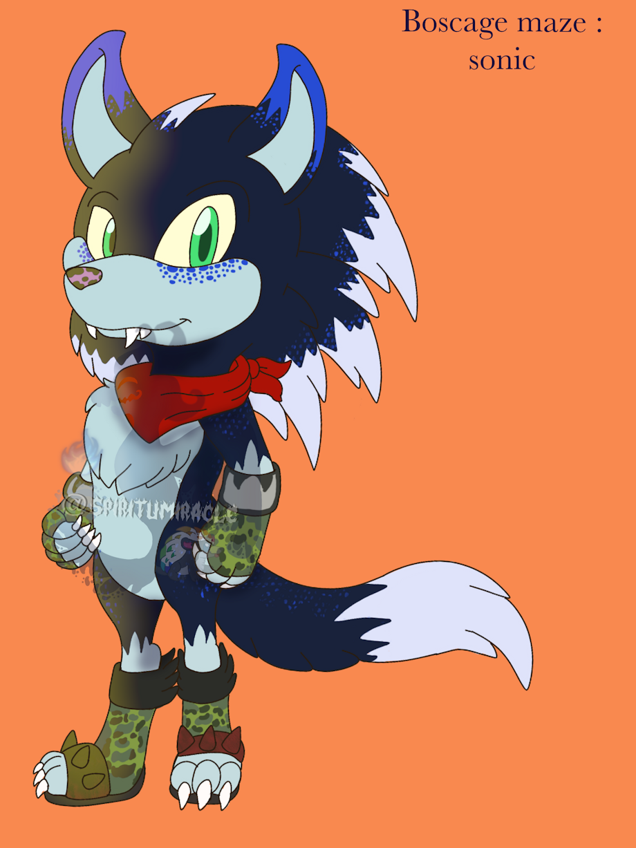 he basically a alternative version of sonic from the boscage maze dimension he more werehog in design wise but unlike his friends sonic has wolf like behavior patterns and have natural markings ( no body paint / dye ) so his leopard or jaguar spots help him blend in the grass. But his eyes are a bit sensitive to light yet they glow in the dark )