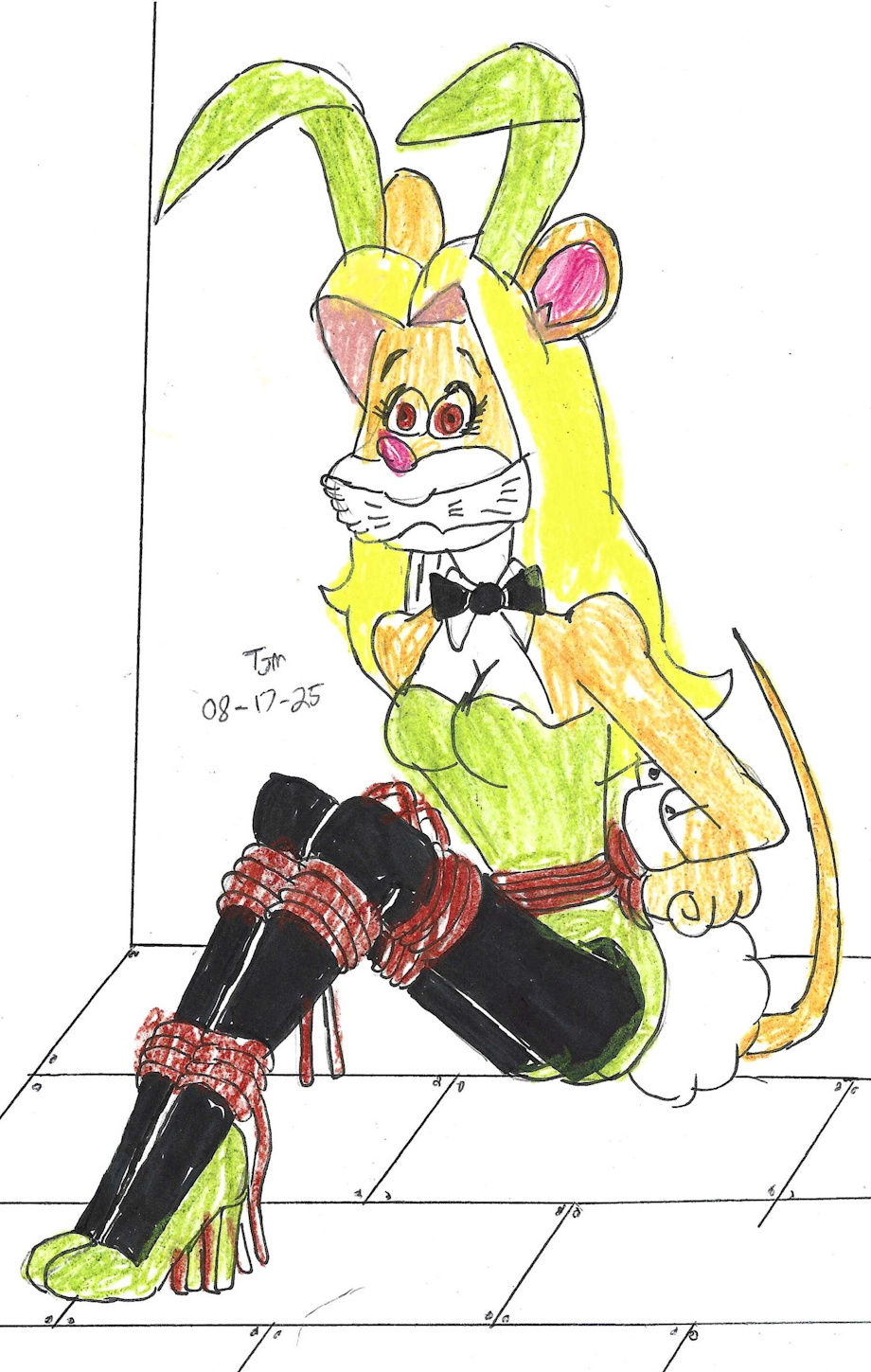 We have Miss Deli Slice of Geronimo Stilton franchise being bound and gagged in a Playboy bunny outfit.