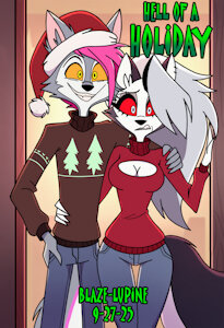 Blaze stood awkwardly near the foyer in a festive sweater and jeans, while Mistral moved through the kitchen with clinical grace - scanning platters for pathogens while somehow also arranging mistletoe with mathematical precision.