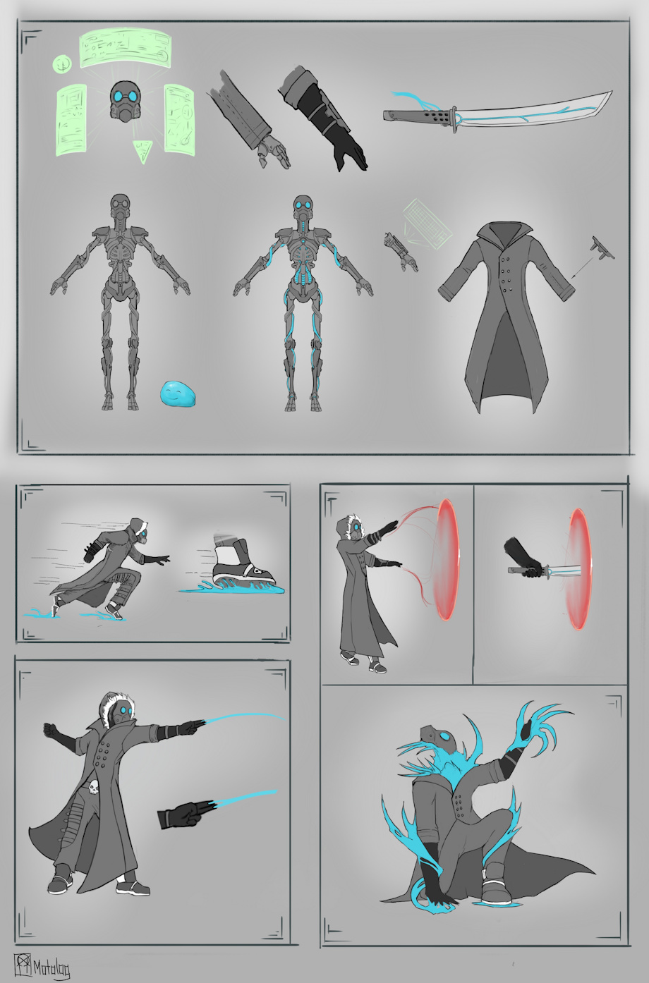 - Under his pseudo-shoes, which are part of the armor, there are small holes that can open, so that Hazy can step out of his slime body a little and then slide across the ground while skating, to move faster than simply walking or running.