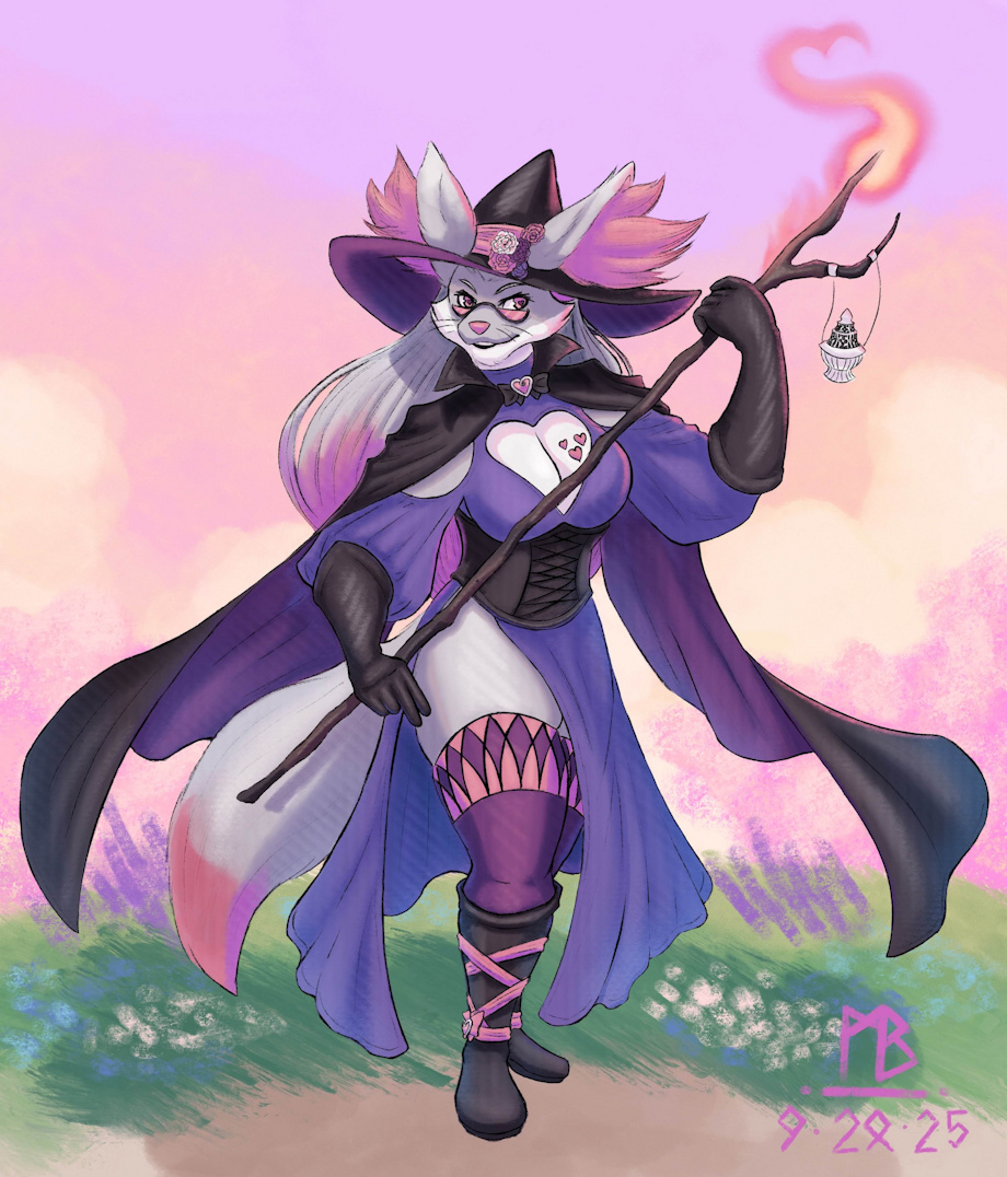 Her name's Valentia, and she's a Shiny Delphox from Kalos, and also a very talented alchemist with a strong specialization for creating buffing, and status effecting perfumes :3
