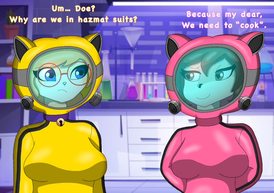 Doe and Queen are looking good in their hazmat suits. I wonder what they'll be "cooking".