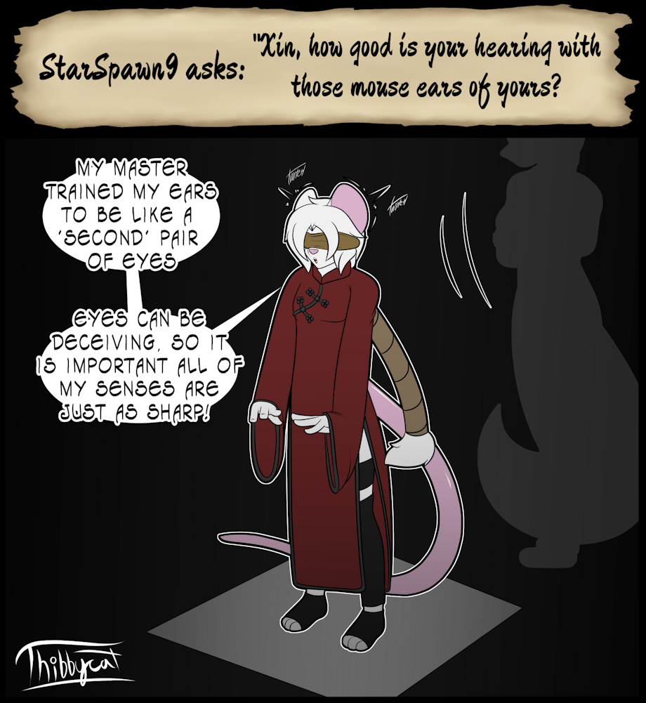 For Xin, there's more to martial arts than just hitting things hard! Situational awareness is just as important as the ability to defend yourself, so he has made sure to keep all his senses as honed as possible.