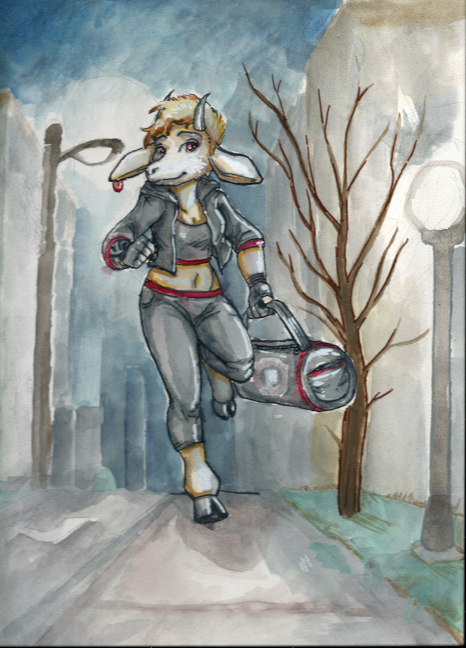 I kind of struggled with the background in this one, next time I do a background, I want to pick the perspective at the start a little better. I did one point perspective but not very well. It's harder to do it with a ruler by hand than digitally.