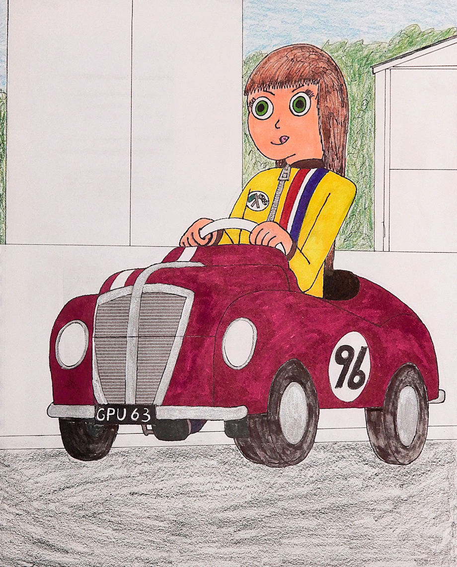 Abbey Lane is doing some intense practicing for Goodwood Road and Racing Club's most unique race. It's called the Settrington Cup Race, and the participants are kids racing in restored or modified versions of the 1946-48 Austin J40m pedal cars. Part 1 http://www.youtube.com/watch?v=Ah1IIh29joQ Part 2 http://www.youtube.com/watch?v=z7NAsoqkXKU She'd been spending many weeks intensely training for many weeks for that race, seeing how fast she can mount her car and race to the finish line. Sometimes her dad and the other parents noticed her pedaling so fast, she even popped a slight wheelie. "My daughter is gonna win that cup for sure," her proud father said to himself. "I can feel it in my bones...and even if she doesn't, I'll know she did her best."