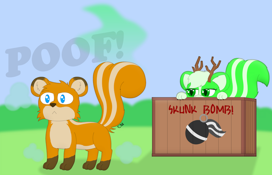 A Foxy got a little too curious and got himself all skunked up by the Skunkgon in the box!