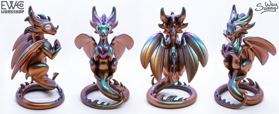 Adorable little dragon holding a heart! This figurine was part of a “surprise me” pre-order. The final look turned out truly magical! A bronze-to-emerald gradient so colorful shifts in light~