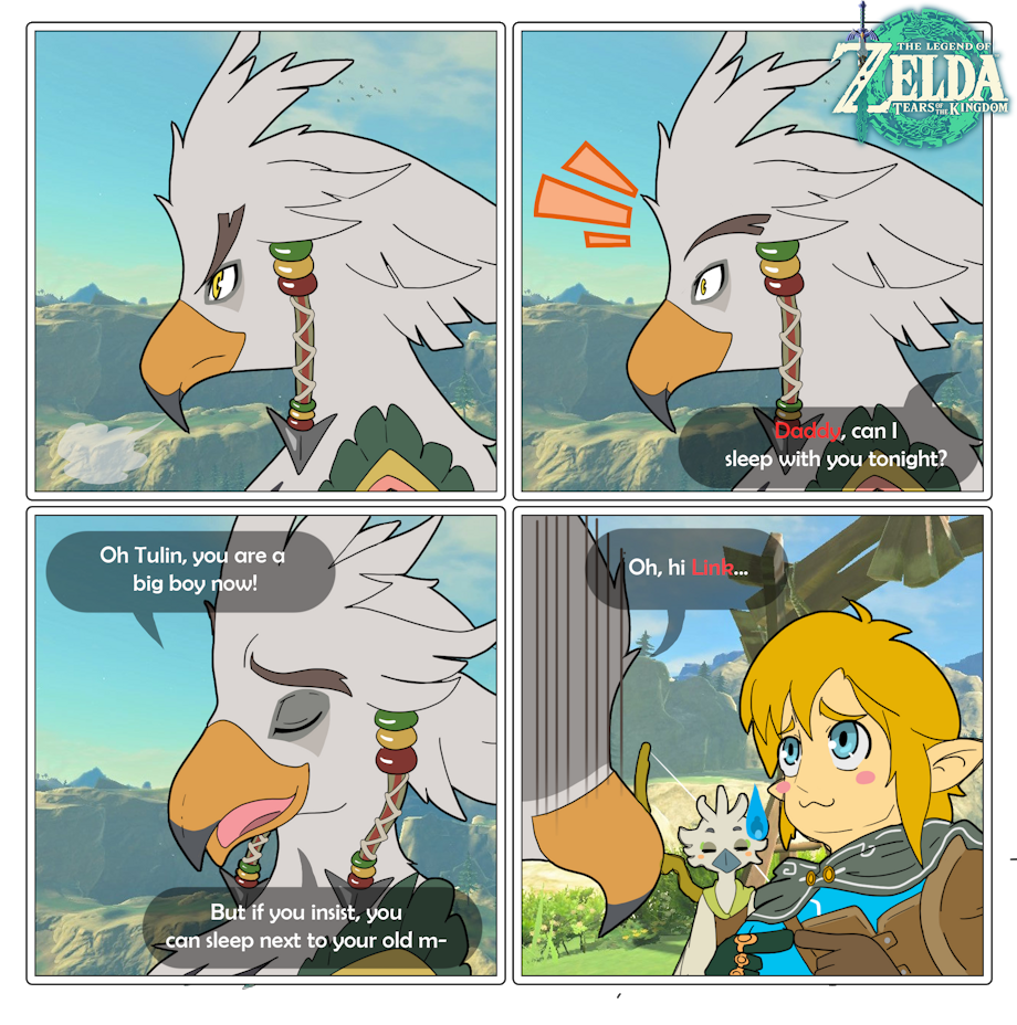 Teba is so snuggable, don't you think? Link just had to take Tulin's place. Which Rito bird is your favourite?