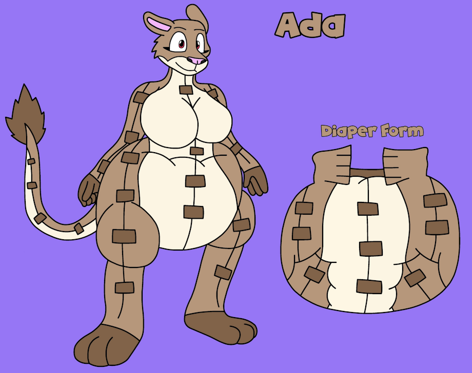 This is the final character I bought from thesoftscientist! So, what is her backstory? Well, Ada was an ordinary human, much like her roommate, Aubree. The two of them live together, with cheerful Aubree taking care of everything while Ada is the super lazy roommate, spending her days sleeping and cuddling stuffed toys, almost always wearing a diaper. That's right—Ada is my first character who is into ABDL long before she became a living diaper. Interestingly, she is also a furry and has her own lioness fursuit.