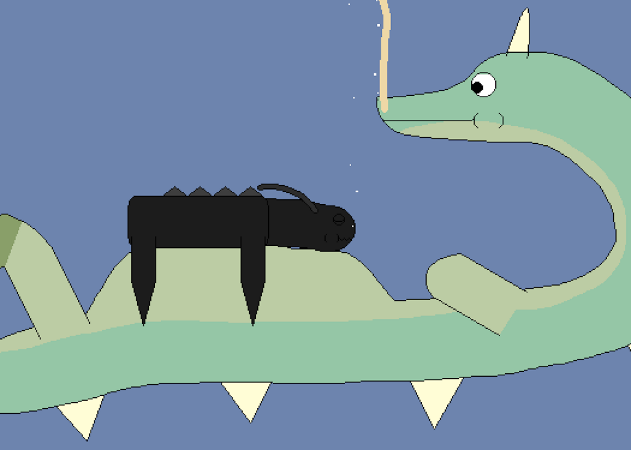 One night, as they traded knowledge, Nox asked Cirrus what a waterbed was, having heard the term once. After hearing the dragon's explanation, the umbrakin wanted to try one out, but neither knew where to find one... Then, Cirrus got an idea, and told Nox he'd be back in a few minutes before flying off. When he returned at his full size, his stomach was substantially bloated out, holding a few hundred gallons of water he'd drunk. "Waterbeds are sort of like this.", he said as he helped Nox onto his front.