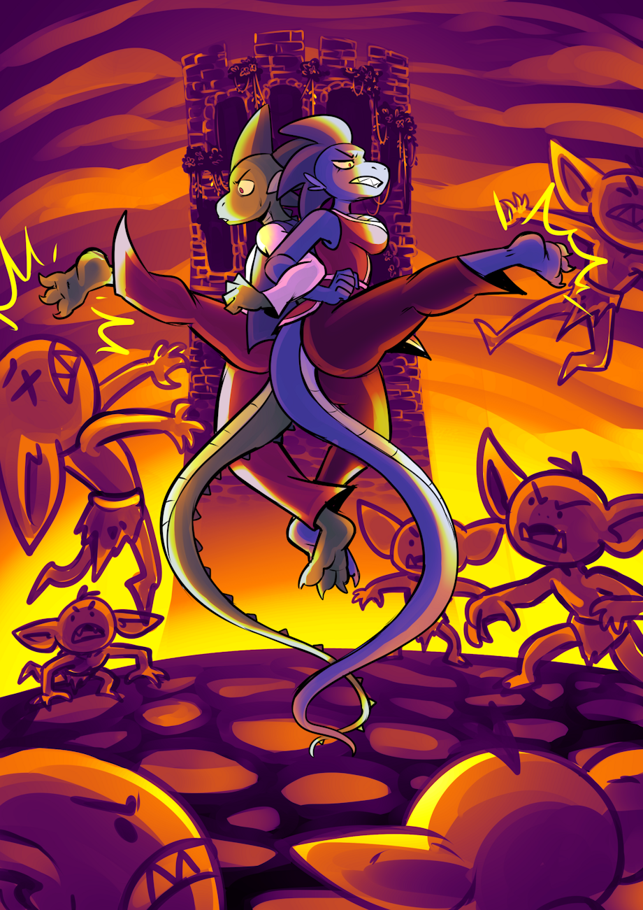 A Streets of Rage-inspired double dragon combo attack as the dragon siblings get some revenge on a horde of gobbos.